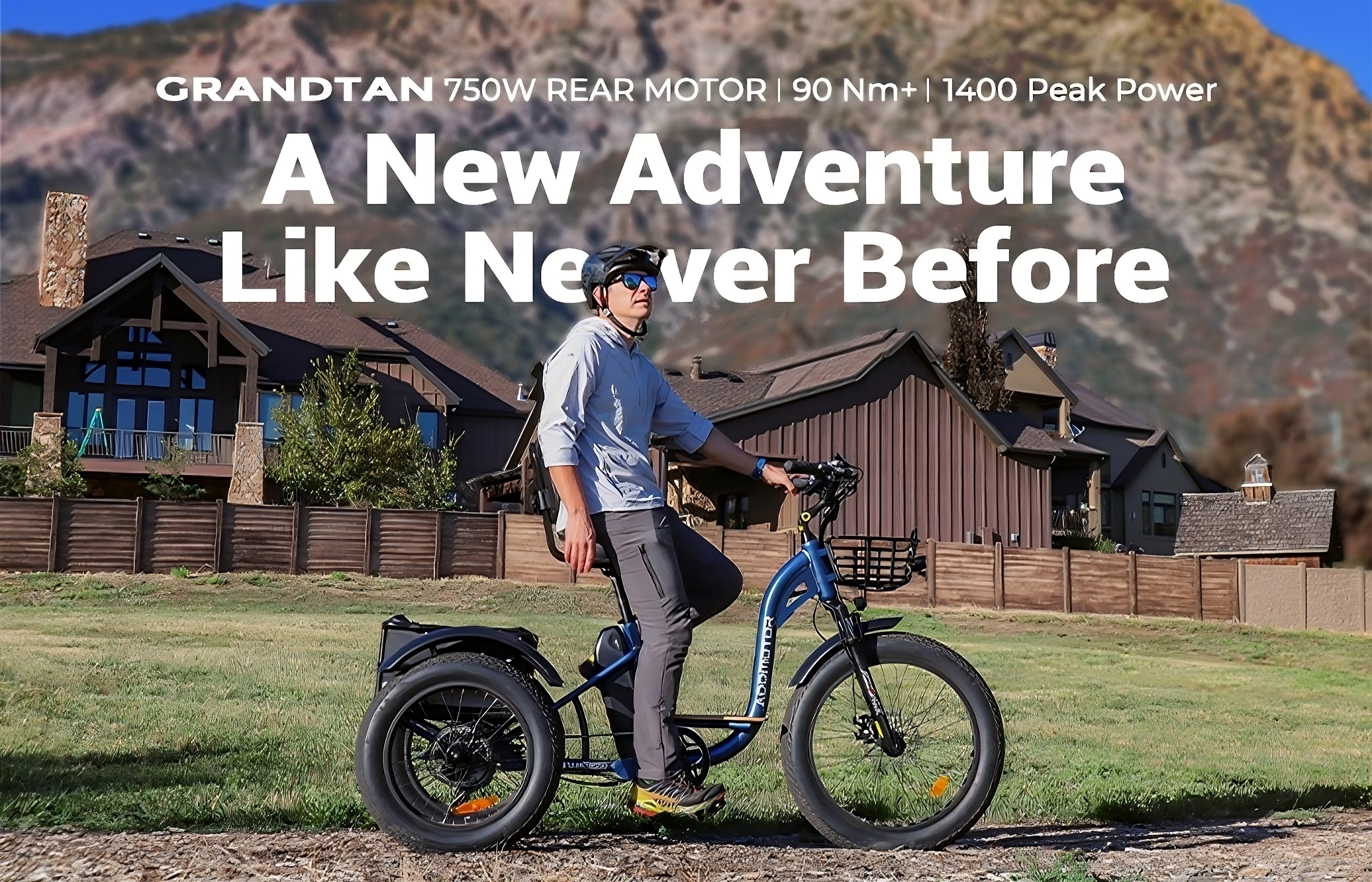 Landtan Fat Tire Electric Trike $2,088 $1,999 48V 15Ah Samsung 750W rear hub motor 65 miles 300 lbs 750W high‑torque motor with up to 65‑mile range + 4" Fat tires + differential system for comfort, stability & safety.
